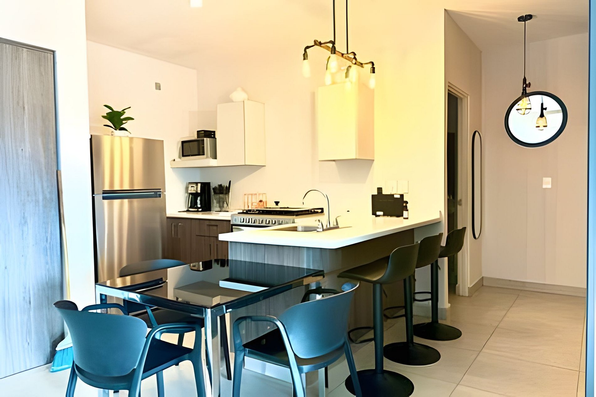 La cocina completamente equipada les permitirá preparar deliciosas comidas caseras, explorar sus habilidades culinarias y deleitarse con los sabores auténticos de México.