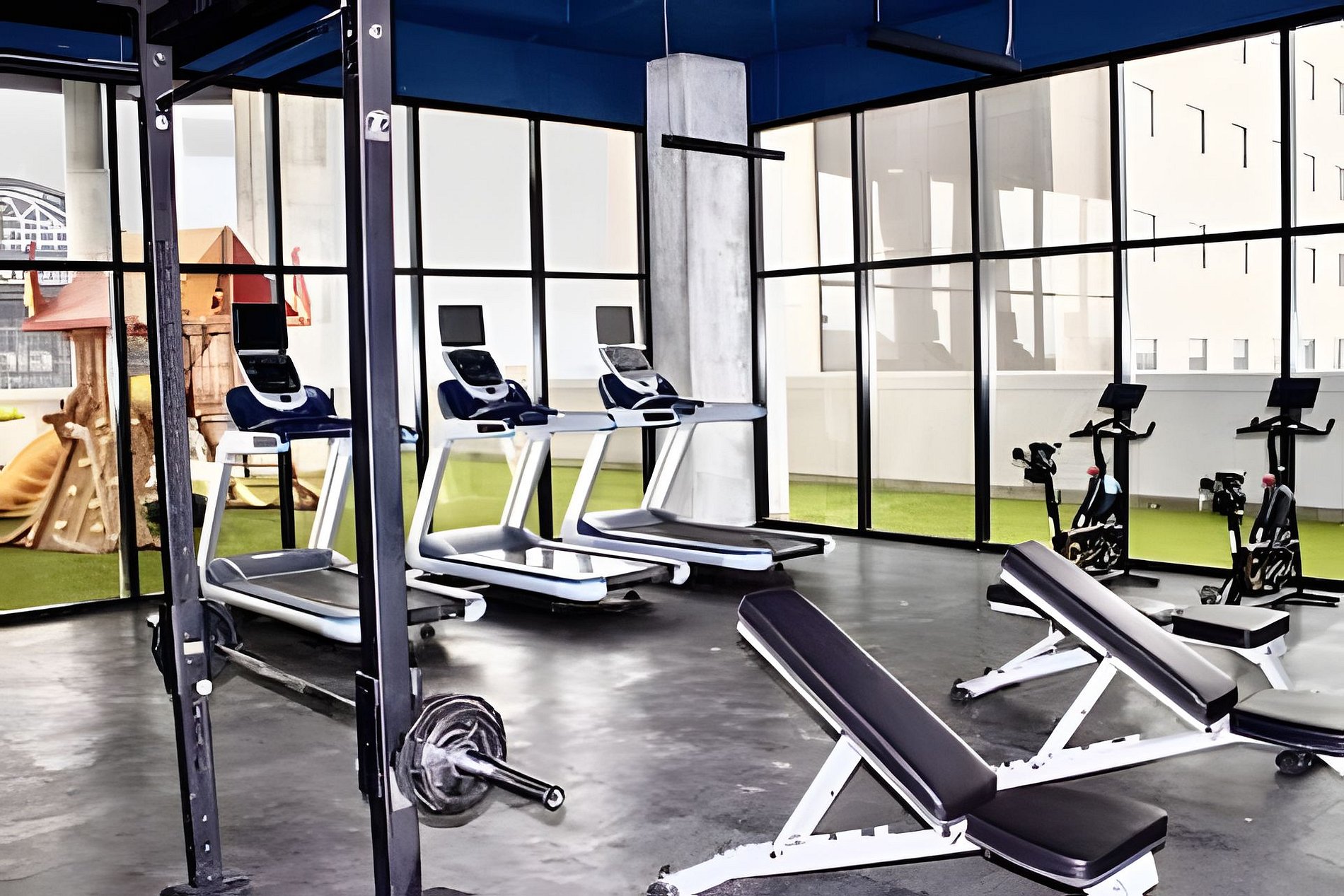 Mantente en forma en el gimnasio totalmente equipado, donde podrás seguir tu rutina de ejercicios y cuidar de tu bienestar físico.