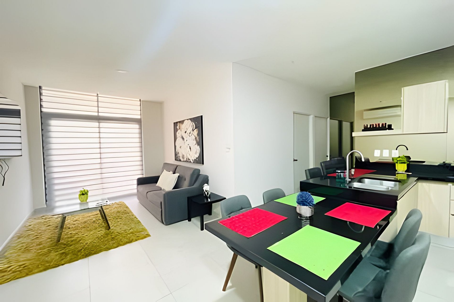 Como huéspedes de este increíble apartamento, tendrán acceso exclusivo a todas las zonas y comodidades mencionadas. Desde el momento en que ingresen, podrán disfrutar de cada rincón de este oasis urbano. Las dos habitaciones estarán a su disposición, brindándoles un espacio privado y acogedor para descansar y recargar energías. La sala de estar, con su ambiente elegante y confortable, los invitará a relajarse y disfrutar de momentos de tranquilidad mientras se maravillan con las vistas panorámicas de la ciudad que se despliegan ante sus ojos. La cocina completamente equipada les permitirá preparar deliciosas comidas caseras, explorar sus habilidades culinarias y deleitarse con los sabores auténticos de México. Además, el comedor y la terraza al aire libre serán el escenario perfecto para disfrutar de estas delicias gastronómicas. Para aquellos que deseen mantenerse en forma durante su estancia, nuestro gimnasio les brindará todas las instalaciones y equipos necesarios para mantener su rutina de ejercicios. Los más pequeños de la familia se divertirán en el parque infantil privado, donde podrán explorar, jugar y reír en un ambiente seguro y entretenido. No podemos dejar de mencionar la conveniencia de contar con un área de barbacoa en la terraza, donde podrán organizar animadas comidas al aire libre y deleitarse con deliciosas parrilladas mientras disfrutan de la compañía y las vistas panorámicas de la ciudad. En resumen, como huéspedes de este apartamento, tendrán acceso exclusivo y completo a todas las zonas mencionadas. Cada una de ellas ha sido cuidadosamente diseñada para ofrecerles una estancia inolvidable, llena de comodidad, entretenimiento y momentos especiales. No pueden dejar pasar esta oportunidad de disfrutar de todas estas comodidades y servicios que harán de su estancia en México una experiencia extraordinaria. ¡Estamos ansiosos por darles la bienvenida y asegurarnos de que su visita sea verdaderamente inolvidable! Todo lo que necesitas hacer es informarnos con anticipación y estaremos más que felices de proporcionarte acceso. Además, estamos aquí para asesorar y ayudar a nuestros huéspedes en todo momento. Si necesitas alguna recomendación sobre lugares para visitar en la ciudad o si tienes alguna pregunta sobre cómo utilizar alguna de las instalaciones, nuestro equipo de asistencia está siempre disponible para ayudarte. Queremos que nuestros huéspedes se sientan cómodos y disfruten de una experiencia inolvidable durante su estancia. Por eso, ponemos a su disposición todas las comodidades y servicios que ofrecemos en el edificio, para que su estadía sea lo más placentera posible. Así que no dudes en hacernos saber cómo podemos ayudarte durante tu estancia en nuestro edificio.
